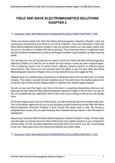 Read Online FIELD AND WAVE ELECTROMAGNETICS SOLUTIONS CHAPTER 3 rtf ManyBooks
